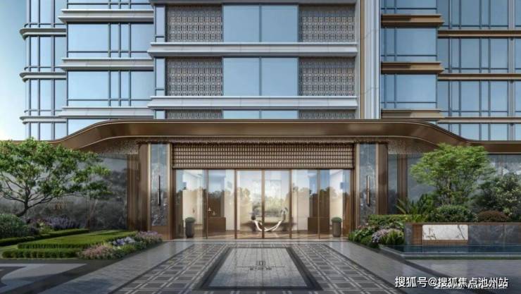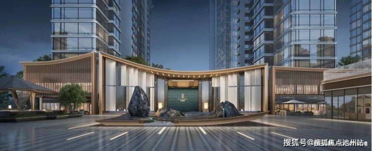 🌟长沙罕有景观式前广场,以湖湘山水意境入景搭配二进制恢弘大门,运用多种奢石,打造封面级城市地标;