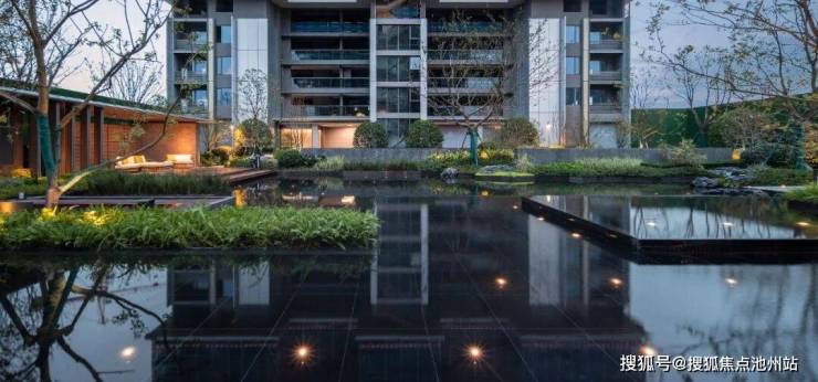 从园区入口到园区景观、建筑外立面、架空层、单元入户,再到样板房...几乎就是一场360度呈现的产品力「环幕大片」。因为南临一线东沙湖拥有得天独厚的水系自然资源,项目景观借鉴曼谷四季酒店设计灵感,在社区人行入口、中央景观、核心节点区域铺陈多处水景,将整个小区打造成一座“微缩的东沙湖”。
