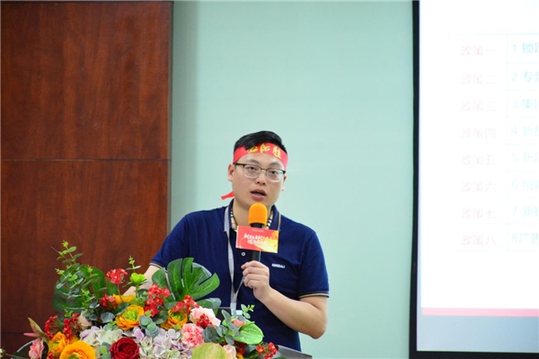 随后,金巴利品牌销售总经理潘立钊讲解了此次的招商八大政策,十大帮扶,进行详细的解读与分析,覆盖线上、线下双平台,一站式帮扶政策助力新商创富盈利。