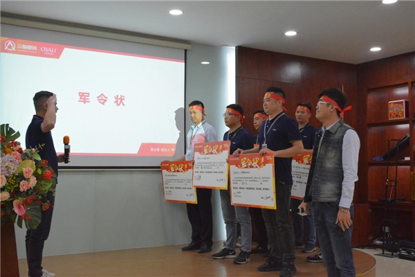 全体营销人员整装待发,斗志激昂地签下军令状,铿锵有力地发表宣誓,并承诺必将以较大热情投入工作,完成招商任务!
