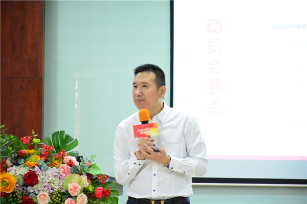 启动会上,金巴利企业董事总经理吴里生为本次招商进行动员发言,激励全体营销人员发挥各自的才华和潜能,一起赢战2022,乘风破浪,共创辉煌!