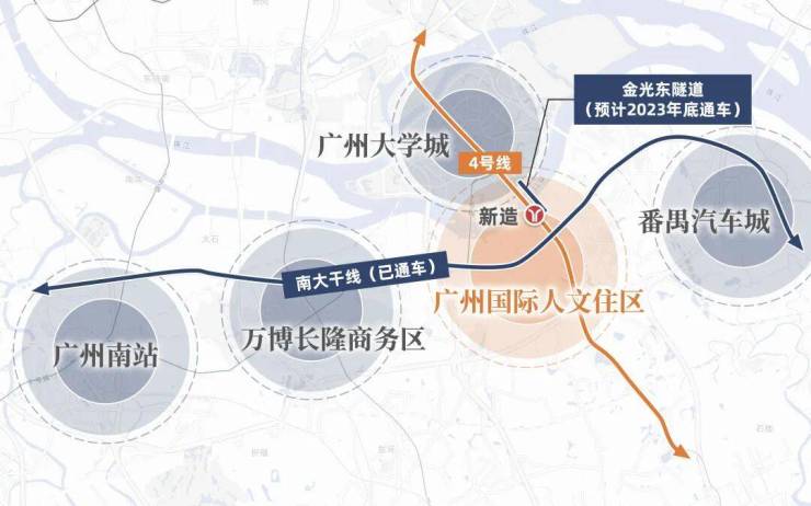 与此同时,南大干线、南大立交等线路已经正式通车,预计2023年底金光东隧道也会通车,不久的将来,这一片广州国际人文社区将会更快连通全市交通网!