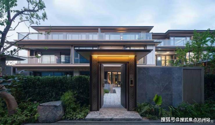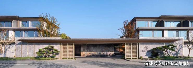 以“宋代官帽”形制打造34米宽4.5米高的迎宾门厅,给予归家仪式感;从中国传统金镶玉的工艺手法中汲取设计灵感,与玻璃相辅相成,营造美学立面;型制上保留了三段式+坡屋顶的比例关系,通过“三重檐”结构,再现东方屋檐之美。