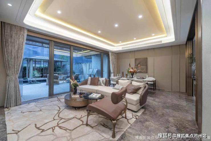 首层“全景式会客厅”,以院景延伸会客意境,一边谈笑风生,一边意趣横生。