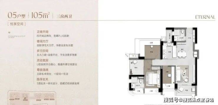 105㎡的4房2厅2卫,折后总价1002-1143万/套,单价9.51-10.84万/㎡。