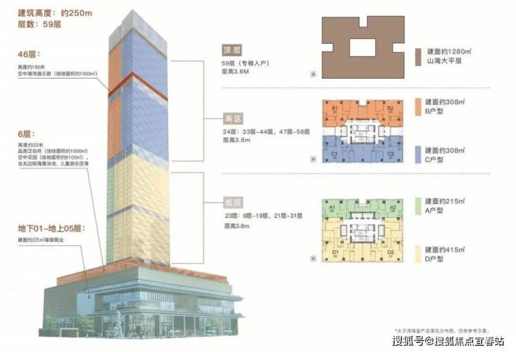 ◎占地面积:约1.4万m²◎公寓可售面积:约6万m²◎商业面积:约3万㎡◎建筑总层数:地下01-地上05层为商业、地上08-59层为品质公寓◎公寓层数:【低区】8-19层、21-31层,【高区】33-44层、47-59层◎公寓总套数:191套◎项目地址:深圳市南山区蛇口望海路与太子湾大道交汇处东南角