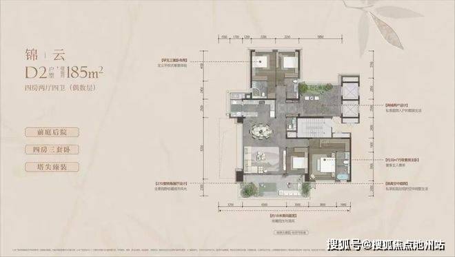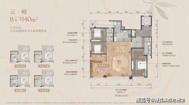 特别是123平和140平户型,并没有其他四代住宅的大露台,而是直接赠送在了里面,解决了隐私性的问题,同时保障房间的宽阔尺度,这挺好。