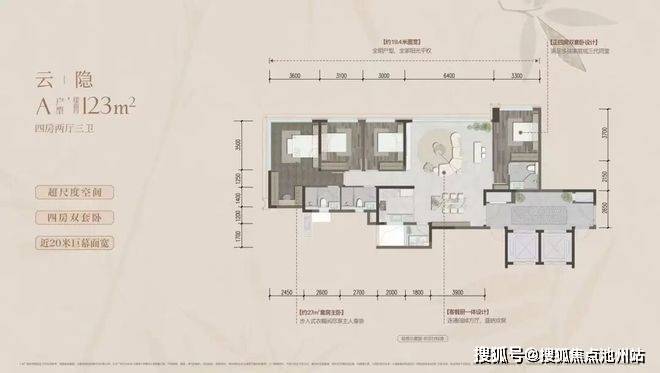 123平实得161平(注意这是建面实得,套内实得大概按照85%来计算,约137平),得房率131%。这很夸张,123平可以做到4房3卫横厅户型,且2个套房,客厅开间还能做到6.4米。