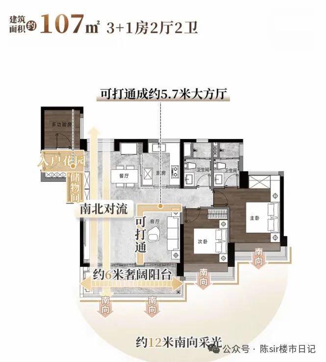 项目首推3栋、4栋,以建面约107㎡、128㎡、143㎡、181㎡纯四房·全南向为主。