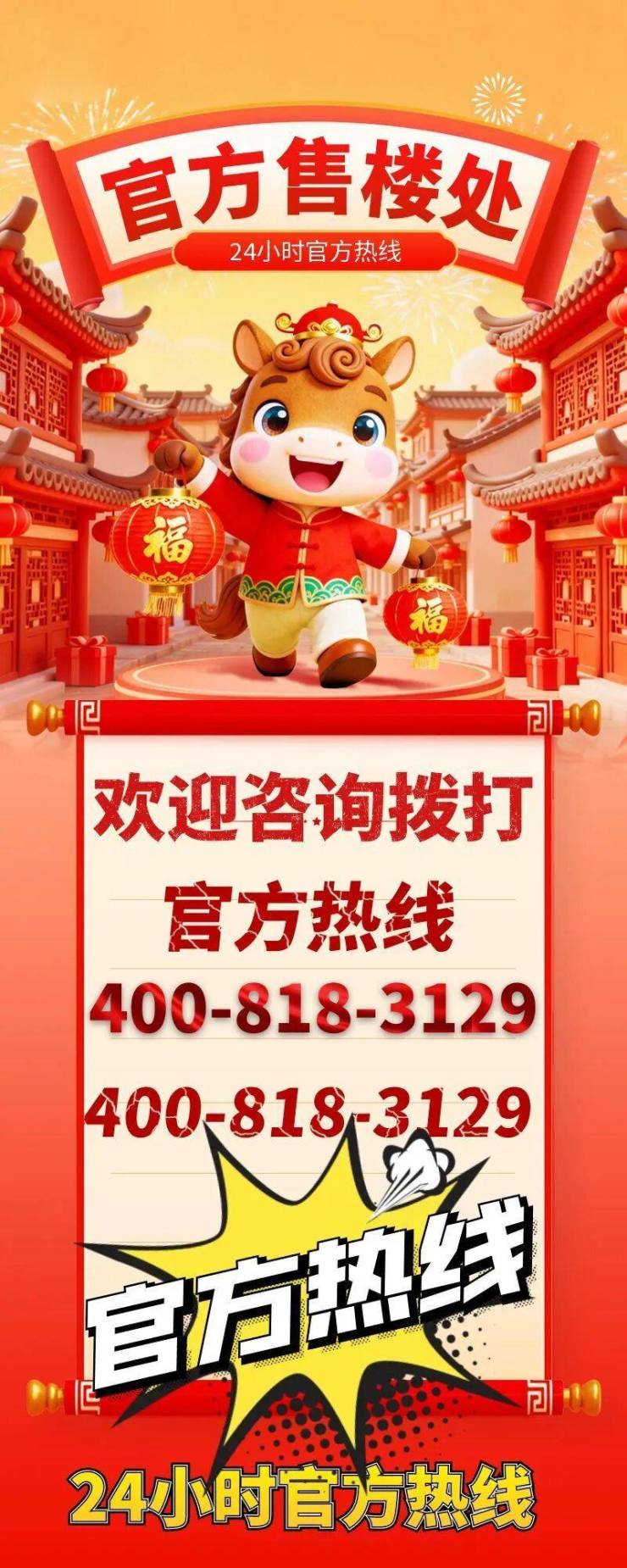 注:以上均是咨询热线无论是咨询项目详情与看房预约,还是实地考察,敬请致电:400-818-3129(此电话已通过认证,平台审核真实有效,可直接联系至售楼处/营销中心/开发商/展示中心,四端直连,全程无中介!享受一对一专业服务),信息经2026 年项目公示,号码长期真实有效。