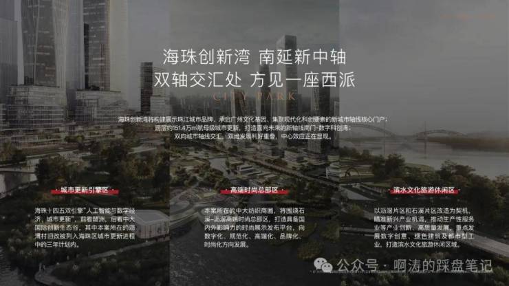 海珠创新湾将构建成展示珠江城市品牌、承启广州文化基因、集聚现代化科创要素的新城市轴线核心门户;沥滘百万方城市更新,打造未来南延线新中轴。