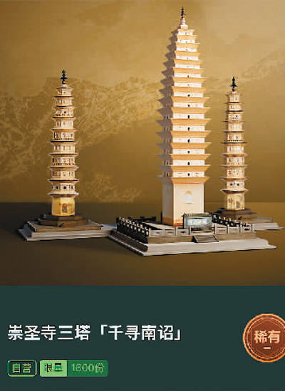 记者打开“游云南”APP,进入“数字藏品”专区,看到目前正在出售的两款:“数藏大理·崇圣寺三塔”,它还原了崇圣寺三塔精妙的艺术价值与厚重的历史沉淀,其中“特别款·苍山雪影”呈现了冬日苍山十九峰飞雪吹落于三塔这一唯美画面,数字藏品令人有身临其境之感。