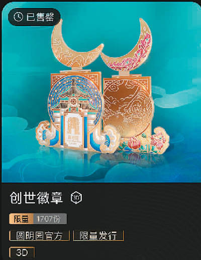 数字藏品作为一种数字化文创新形态,更易于将传统文化以更年轻化的方式展现出来。圆明园今年推出的“创世徽章”“并蒂圆明”两款数字藏品,融合了多个圆明园代表性的文化元素,并以新颖的创意设计进行呈现。“创世徽章”正面为星河照耀的圆明园大水法,背面的清宫插屏画中是荷花与圆明园四十景之万方安和构成的夏日怡景,塑造了瑰丽的皇家园林气派。