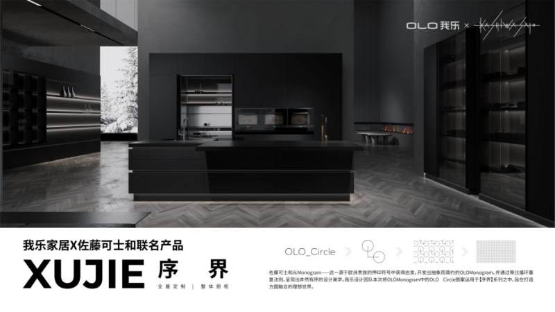 值得一提的是,我乐家居近期与日本国宝级设计师佐藤可士和达成了深度合作,将其设计的OLO Monogram纹样运用到厨柜新品“序界”系列中。此系列产品在色彩上主推低调而柔和的罗咖棕,另有深邃简约的墨言黑可供选择,不仅将纯色门板与暗藏金属光泽的OLO Monogram图案门板搭配使用,更在沉敛色彩中融入来自佐藤可士和的设计巧思,打造出独具个性的现代主义生活空间。