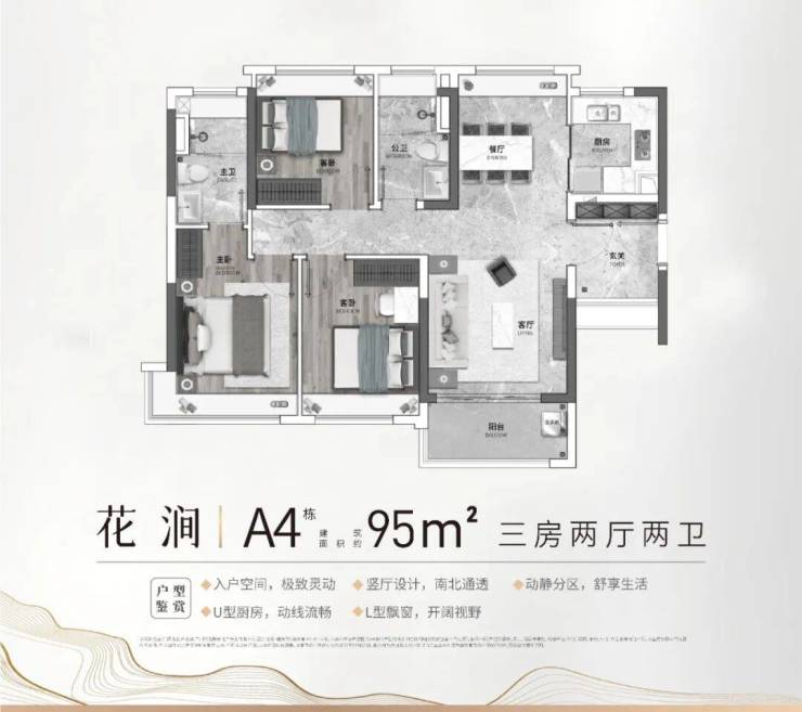 璟珑府涵盖建面约95-110㎡宽境洋房,建面约142-168㎡山景板楼和建面约206㎡空中墅,1.2低容积率,南向宽境舒居,采光更优,南北对流,清风穿堂而过,分外舒爽。观景大阳台,直面园林美景,满足三代同堂生活所需。