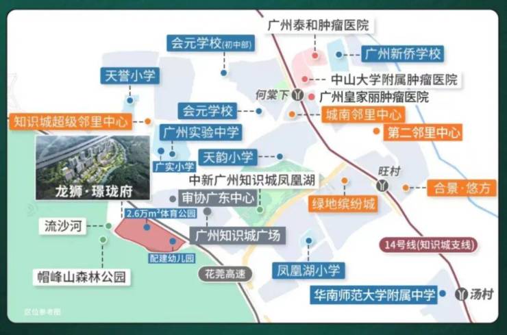 项目配建有12班幼儿园(在建),直线距离300米直达广实小学。周边3公里分布广州实验中学等多所优质学府,幼小初高学府护航,满足全龄段教育需求。