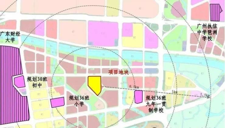 3、国际校圈:500米左右范围处规划一所36班小学、一所36班九年一贯制学校+国际私立+广东财经大学