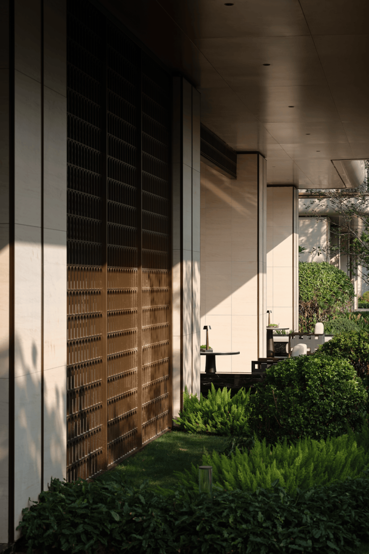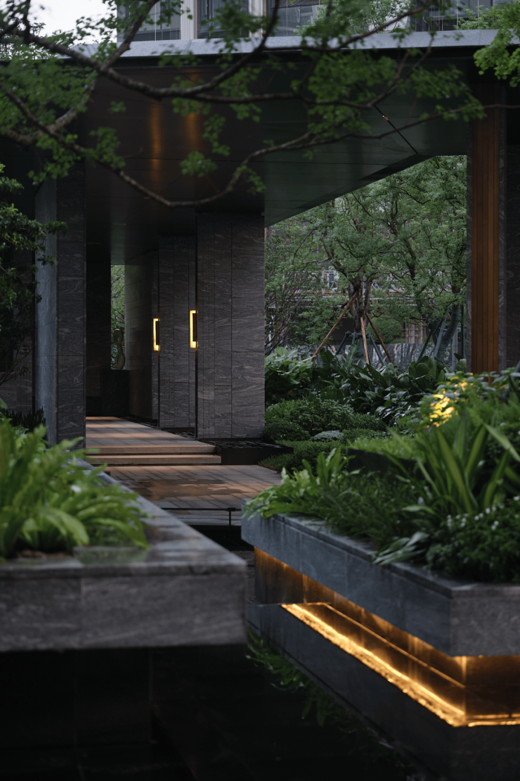 穿越大堂,景致渐入幽微。曲径通幽之处,别有洞天。景致层层递进,错落有致,呈现的景观与外部湿地生态浑然一体,一种沉浸式度假感触手可及。