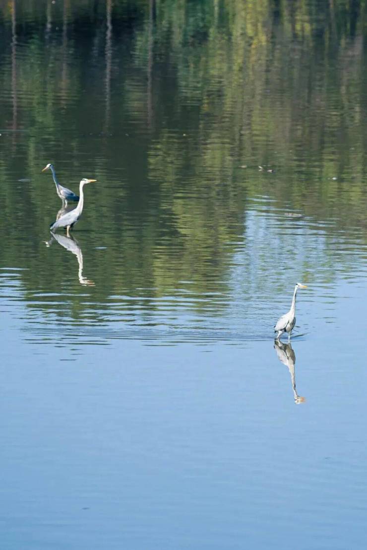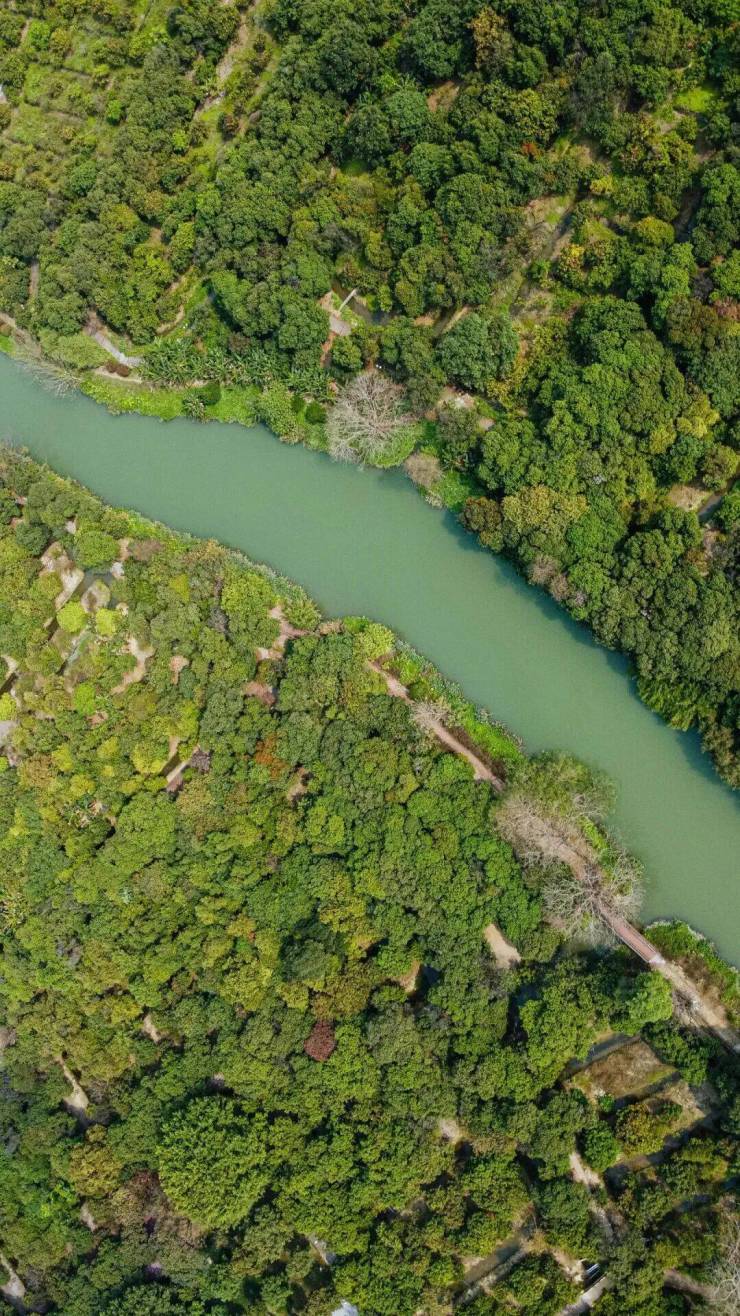 沿岸乔木、乌桕树等花木错落有致,游憩其间,满目皆绿意。四季流转,景致随之更迭,畅游之趣亦不尽相同。