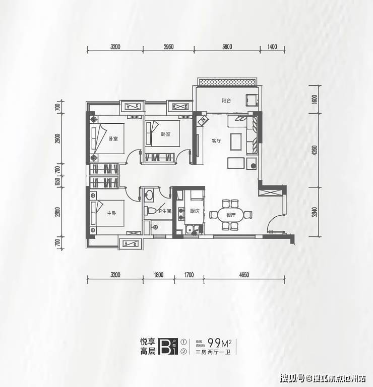 💎在售户型:建筑面积约99-100㎡三房两厅一卫、约116-119㎡三房两厅两卫