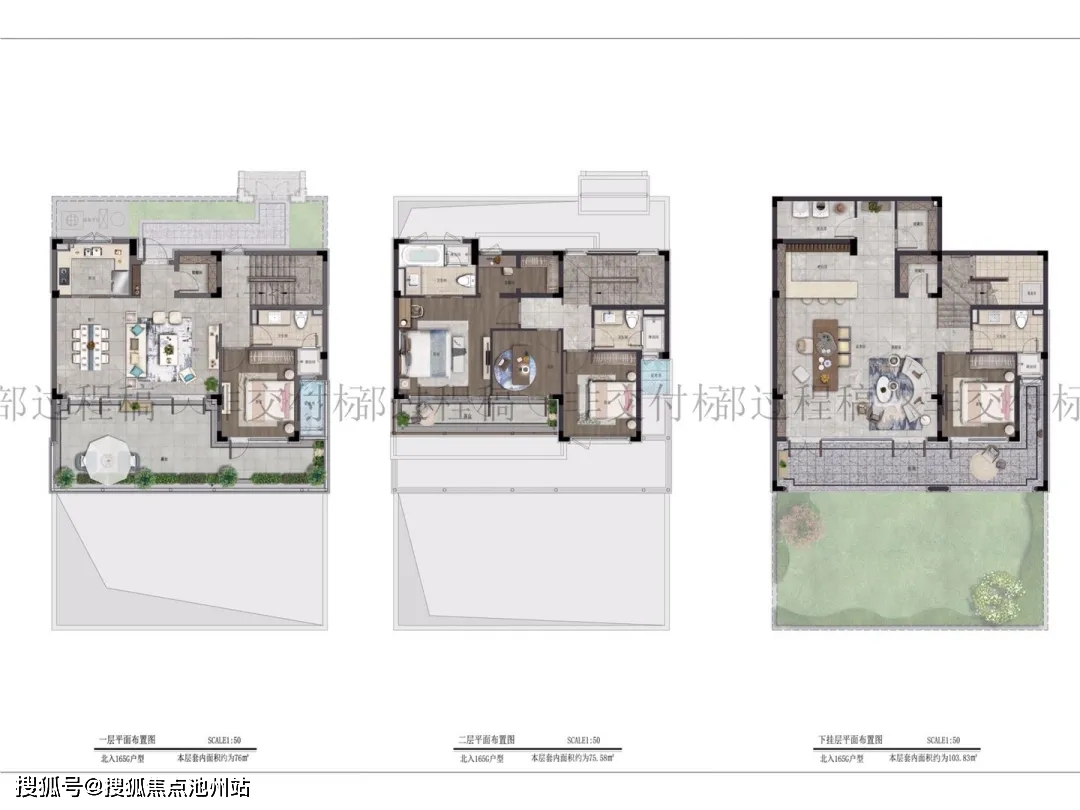 5、层高设计:一层住宅的一层层高约为4.10m;二层住宅的一层层高约为4.20m,二层层高约为3.75m;三层住宅的一层层高约为4.20m,二层层高约为4.20m,三层层高约为3.75m。如此高的层高设计,使室内空间瞬间变大,提高居住体验感。
