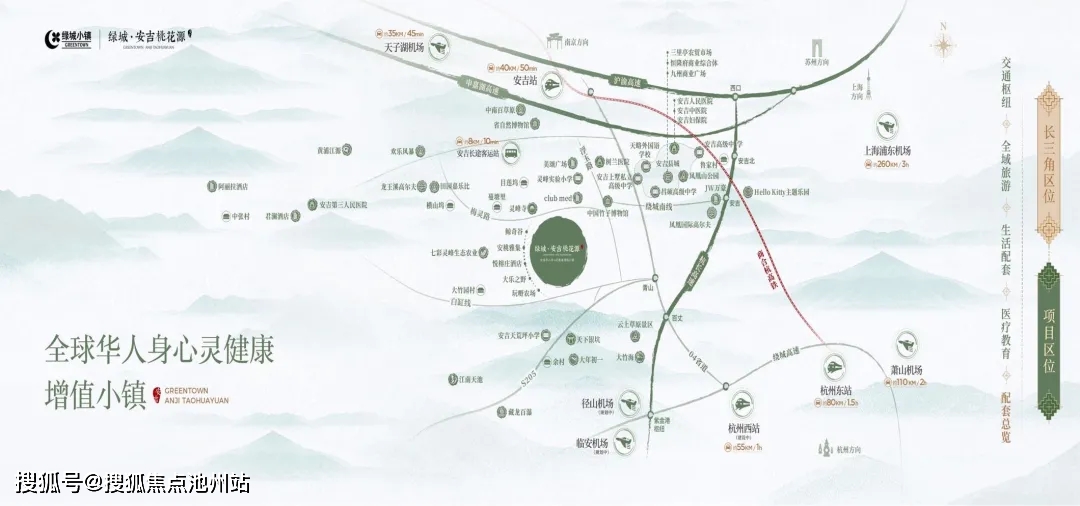 3、交通利好:项目距离杭州50余公里;项目至上海221公里。高速通达:S14杭长高速余杭段,针对浙A牌照小客车ETC免费通行;申嘉湖高速西延线安吉段已经全线通车,安吉到湖州车程直接减半。高铁在建:商合杭高铁结合在建中的沪苏湖高铁,未来,安吉到上海乘坐高铁将更加迅捷。