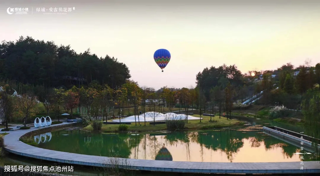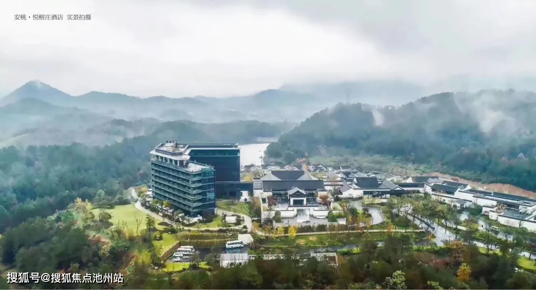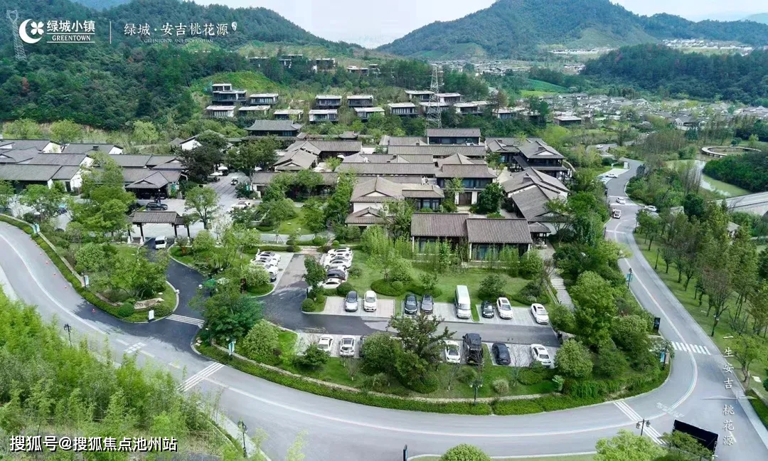 绿城安吉桃花源由绿城房产独立开发,归属绿城中国旗下的小镇集团,作为小镇集团五大板块中的康养度假标杆项目。项目总占地 8256 亩,四面环山,具有得天独厚的自然禀赋,整体地形以缓坡丘陵为主,山地起伏,地貌丰富,建设用地 2000亩不到,保留 6000 余亩的自然生态绿化,每立方厘米负氧离子含量在 3 万左右,让业主住在小镇里可以享受天然氧吧。