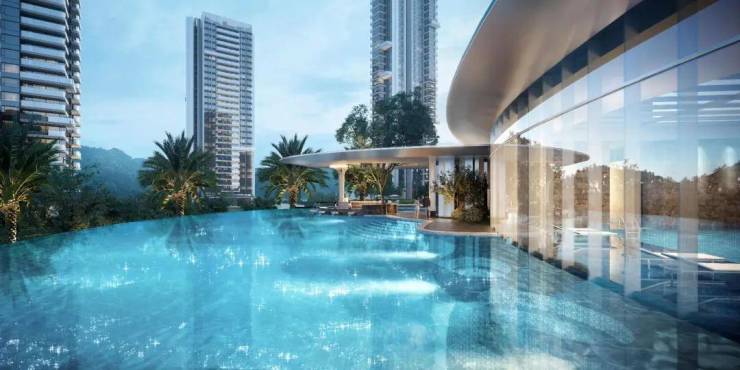 2.3万方完整无分割的中央花园,约800方双泳池(常温泳池+恒温泳池);以王维《辋川图》为灵感,融合世界审美与东方品味,构建当代山水度假园林。