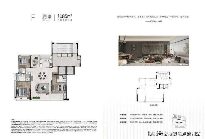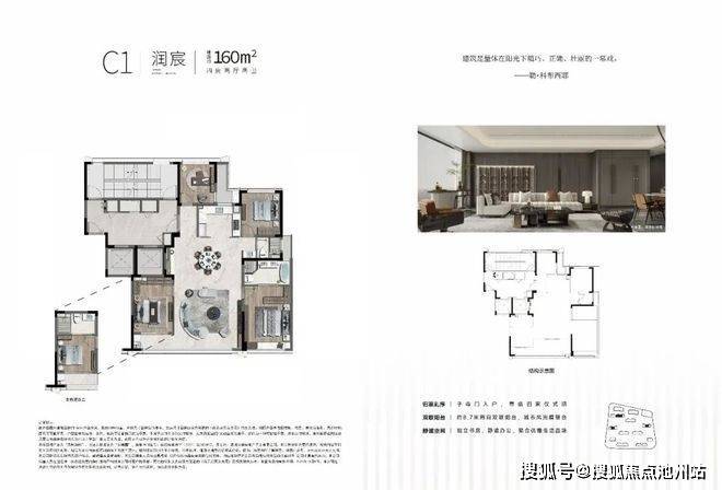 BLDK一体化设计的两厅+四叶草四房+三卫;归家礼序:子母门入户,尊崇归家仪式感;双联阳台:约8.7米南向双联阳台,客厅阳台之间无承重墙,空间更灵动;静谧空间:独立书房,静谧办公,契合优雅生活品味。