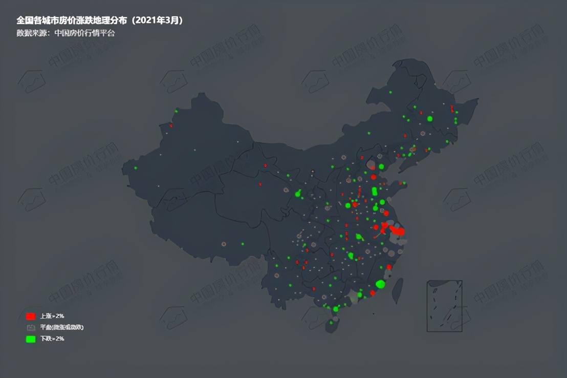 地理分布方面—— 房价上涨的大中城市主要分布在长三角地区,房价下跌的大中城市主要分布在珠三角及山东地区。内陆大部分城市房价无较大波动。
