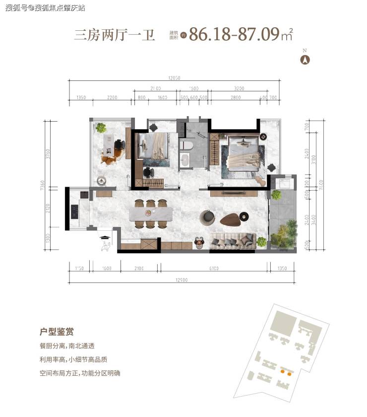 三房两厅 建面约86.18-87.09㎡