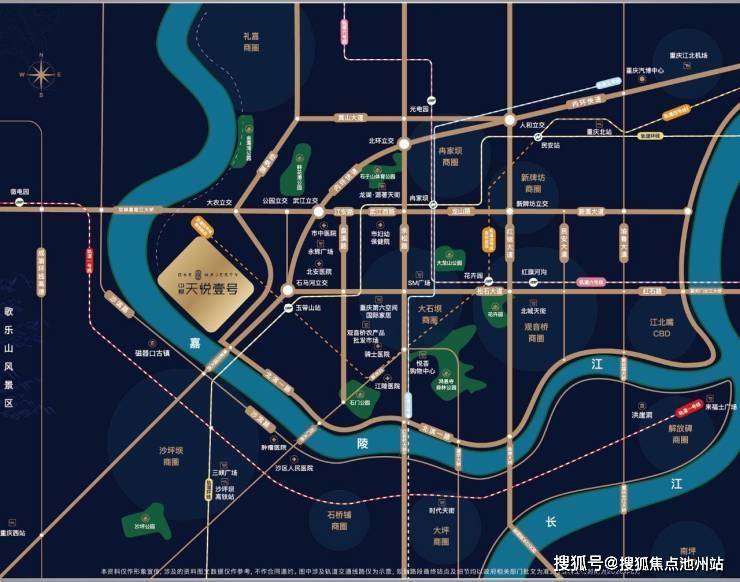 交通:一环三桥三横四纵(一环:内环高速 三桥:双碑嘉陵江-大学城 高家花园大桥-沙坪坝 石门大桥-石桥铺)三横:松石头大道-江安路-武江西路-北滨路 四纵:宏帆路 -盘溪路-余松路-红锦大道 双轨:环线玉带山站(2公里)四号线西延伸顺水寺公园站(项目旁一百米左右 预计2025通车)