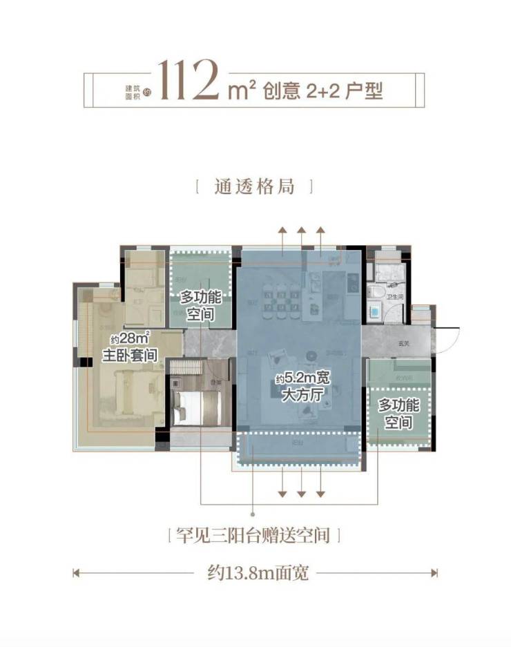 罕见三阳台赠送,拓延更大生活尺度