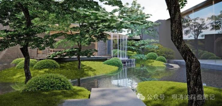 攫取岭南园林之基调,追溯人文生活本源,以现代造园功法,解构山水图景,打造“林起、穿林、林间、远林”四大主题景观,献呈可赏,可游,可居的桃源谧境。