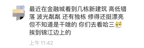 据这位粉丝描述,相较金融城清一色高耸入云的建筑天际,这片建筑呈“高低错落”分布,其中甚至有“独栋”样式,在寸土寸金的金融城,不可谓不奢侈。