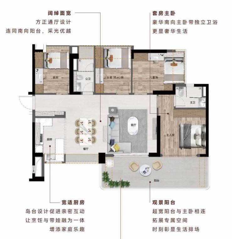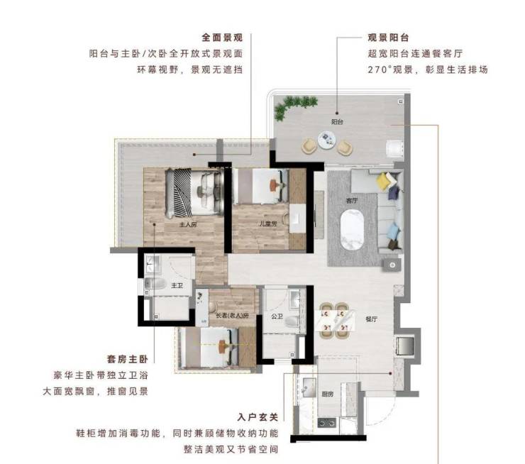 三开间朝南|12㎡宽阔阳台|超广角江景视野|270°主卧飘窗