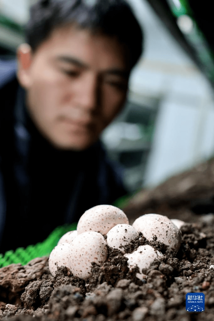 工作人员在贵阳市白云区食用菌产业示范园智能菇房内查看菌菇生长情况(2月14日摄)。新华社记者 欧东衢 摄