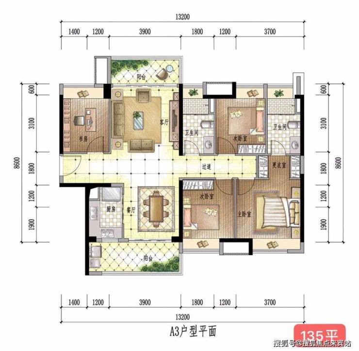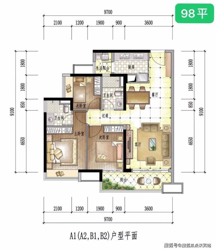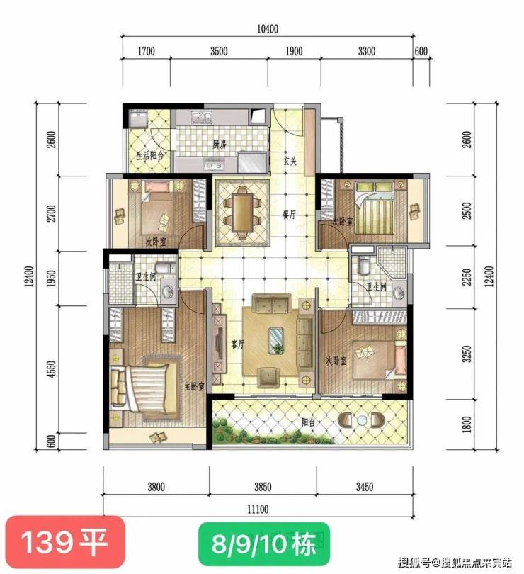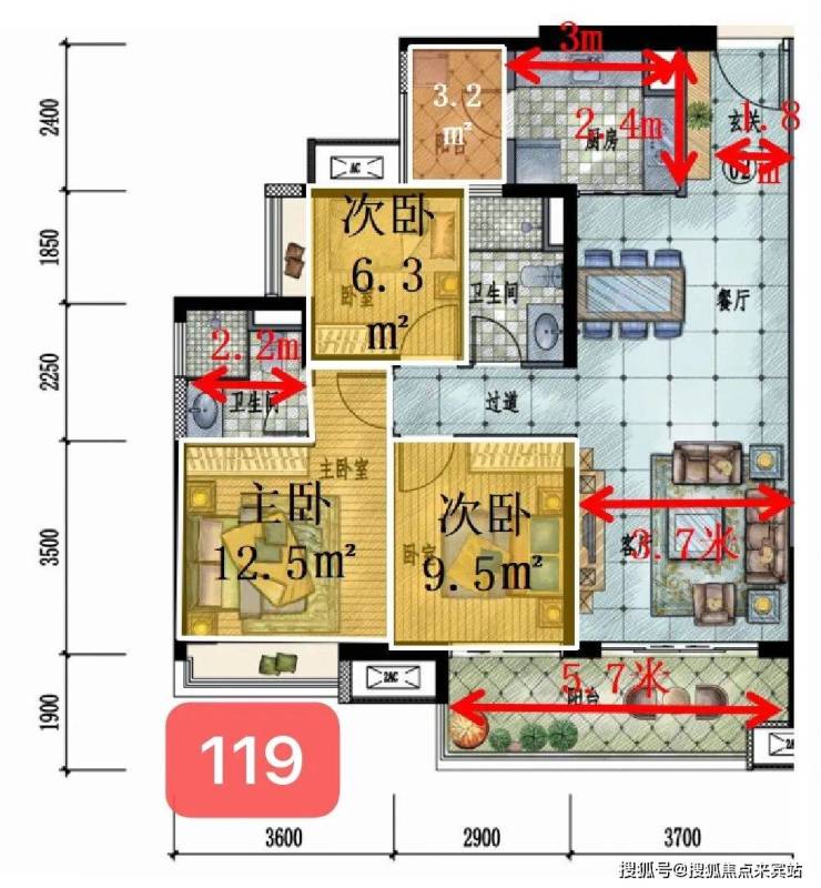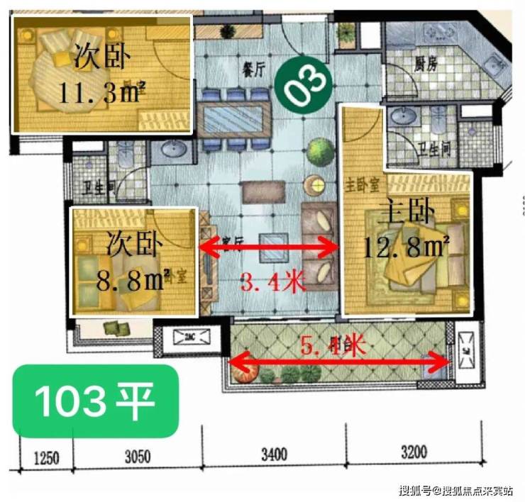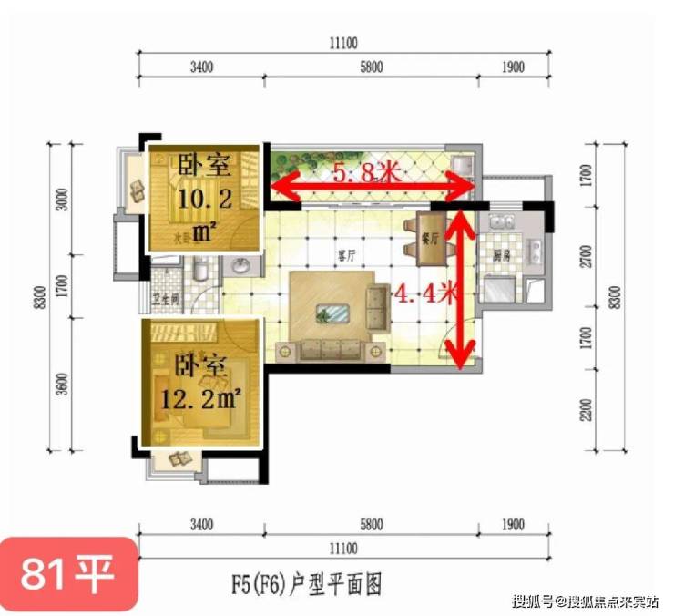 5.8m宽厅+12平主卧+270°瞰景飘窗