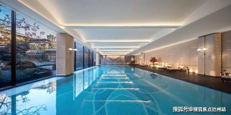 近1500平的下沉式会所,配置恒温泳池、健身房、18人位私宴厅、格调行政酒廊,而这样的空间围绕整个下沉式庭院排布,全景玻璃窗让景观与空间无界交融。