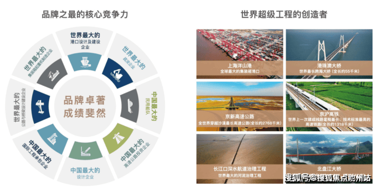 中国交建是全球领先的特大型基础设施综合服务商,国务院国资委经营业绩考核唯一“18连A”的中央企业,2023年居《财富》世界500强第63位,独揽四项世界之最与四项中国之最,包括世界最大的港口设计建设公司、公路与桥梁设计建设公司、中国最大的国际工程承包企业、高速公路投资及设计企业、中国最大的民用船队等。参与设计建造:港珠澳跨海大桥、京沪高铁、上海洋山港等国内外知名工程。