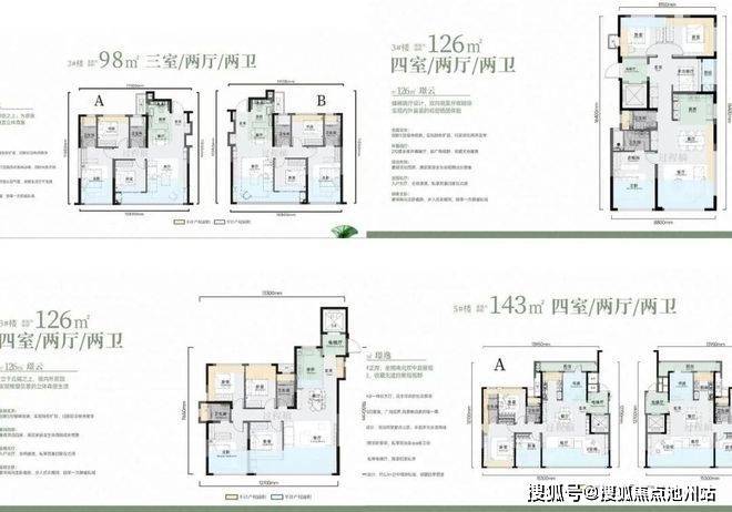 【主力户型】建面约89㎡/98㎡/113㎡/126㎡/143㎡,得房率全线超100%