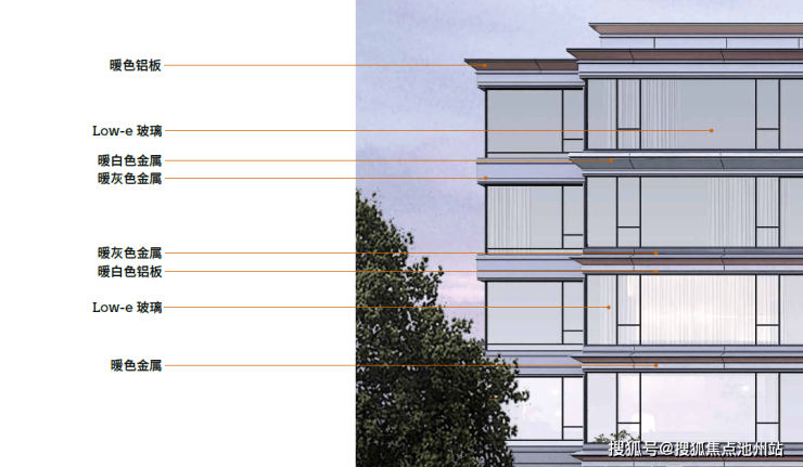 在材料的选择上,设计师偏向使用暖色建材,如暖白色铝板、暖灰色金属、暖灰色格栅、暖白色仿石漆等,达成柔和又不失力量感的美学状态。