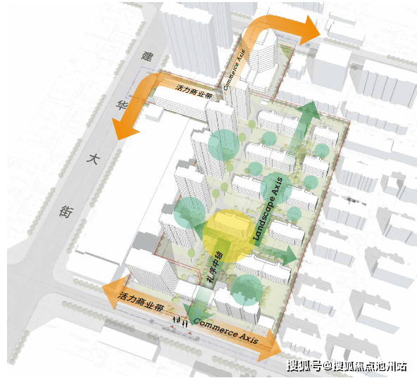绿城锦庐项目以“一轴+两带+多点”的布局进行规划。