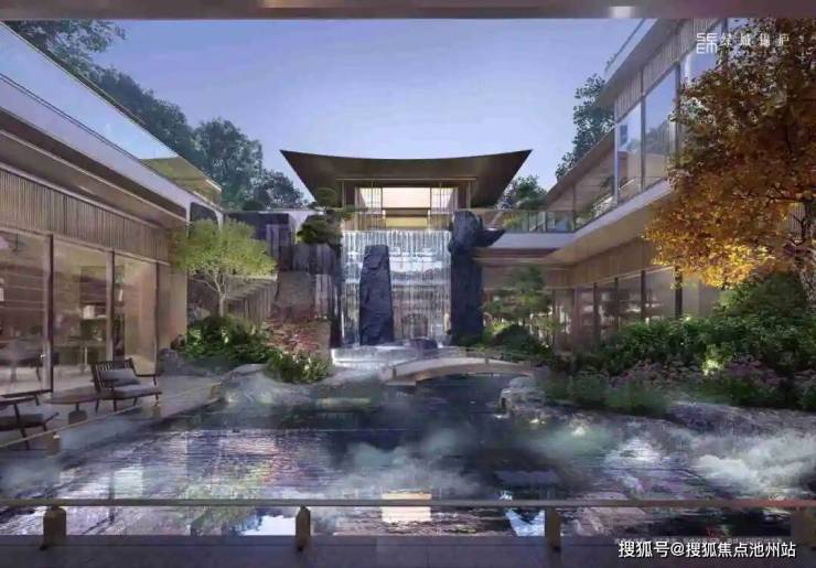 绿城锦庐将社区会客厅作为入口,穿过会客厅,瞬间豁然开朗,中式下沉庭院跃然眼前,有点高差的入口给人一番拾阶而上的乐趣。