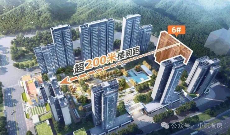 项目采用了能最大化每户景观面的布局方式-围合式布局,它将所有楼栋设计在地块边缘,中间留出一大片空地做园林,东西两面楼距更是达到了200米!相当于15个篮球场的宽度,如此设计带来的好处是很直观的。观景视野被拓展,社区中的每一户都可以无遮挡望园林和山景,采光通风效果也被大幅提升。
