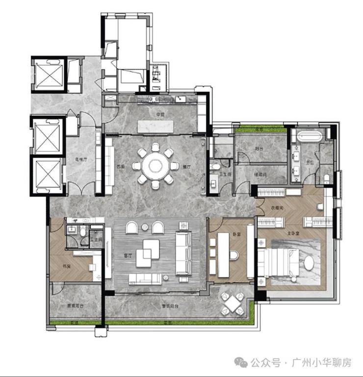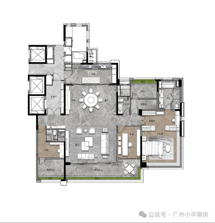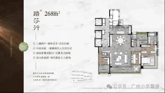 我们再来看看此次加推的268平的大面积户型,作为项目的旗舰,暗藏着哪些巧妙的设计?