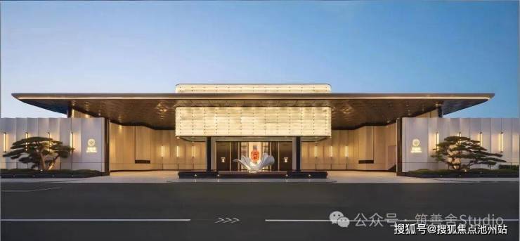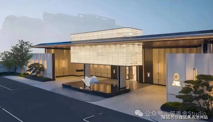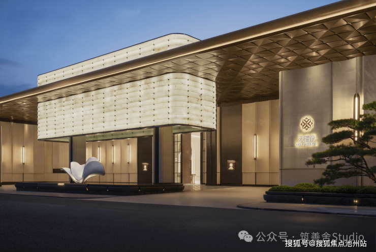 下沉式庭院以“泗水归堂”的围合设计,巧妙汇聚四方之水,寓意“聚财纳福”。晴日水光流金,雨天波光洒银,景致变幻万千。庭院四周百年老树与乌桕成荫,绿意盎然。中央“瓯曜门庭”主题雕塑,演绎“水绕玉环,漪生珮响”的意境,形藏风聚气。池底奢石采用幻影蓝,与巴黎丽兹酒店同款的蓝钻奢石相映成辉,皆为自然孤品。地形还原“错落水景”等自然地貌,呈现“水光晃动,曲水流觞”的立体动态美感,视觉震撼。