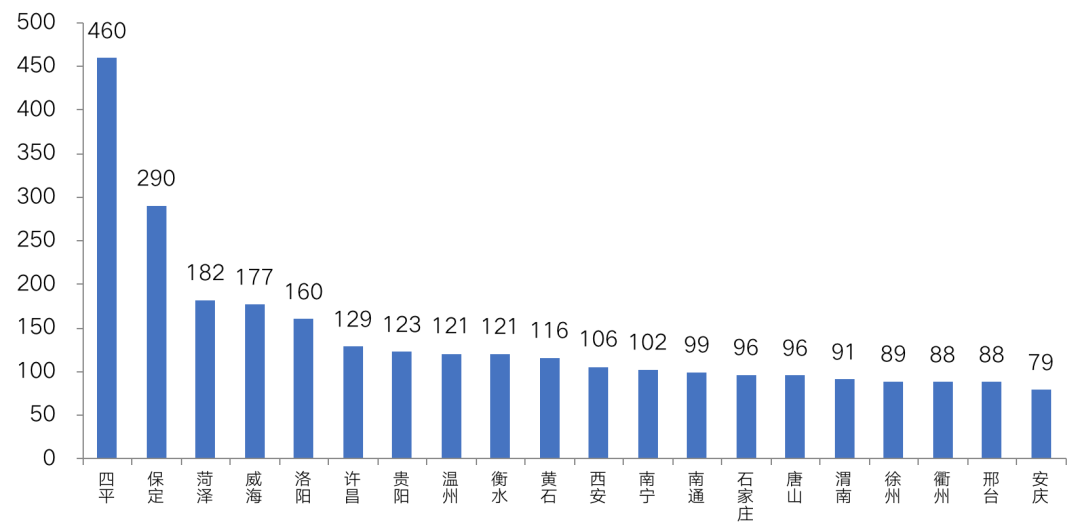 图:“集中供地”新政之后非重点城市涉宅土地供应量TOP20城市(万平方米)