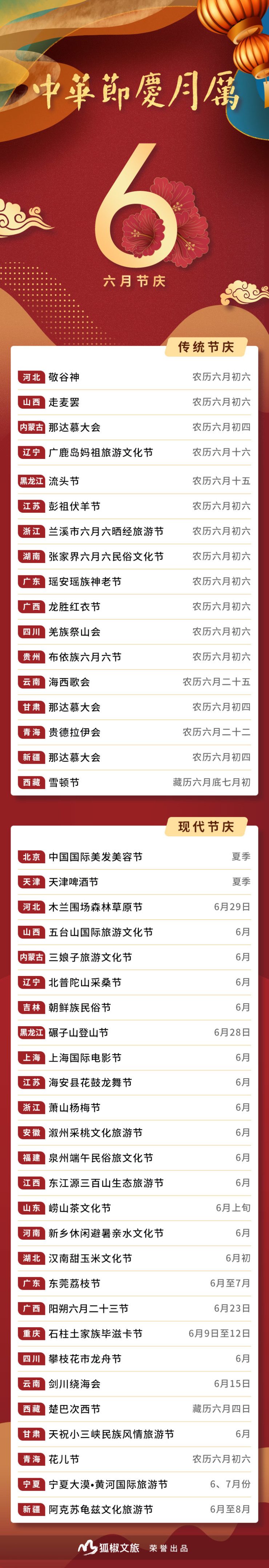 由狐椒文旅推出的《中华节庆月历|6月节庆》发布。