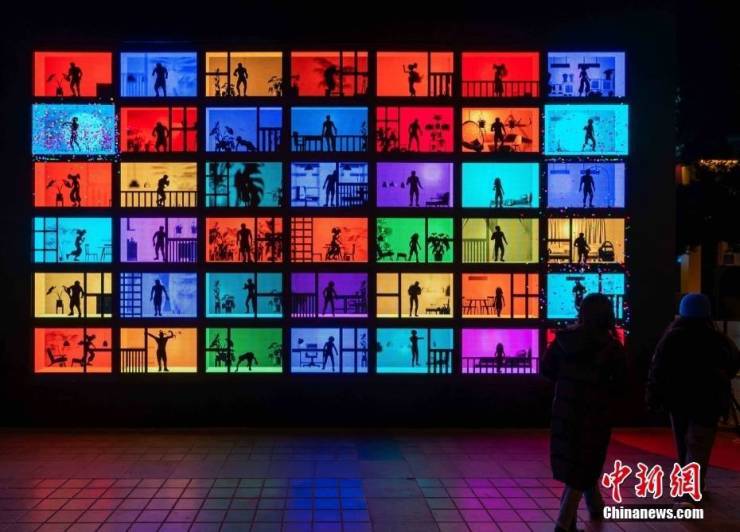 图为以“可持续性发展”为主题的“照亮新加坡”(i Light Singapore)灯光艺术装置亮相重庆,吸引市民驻足拍照。 中新社 记者 周毅 摄